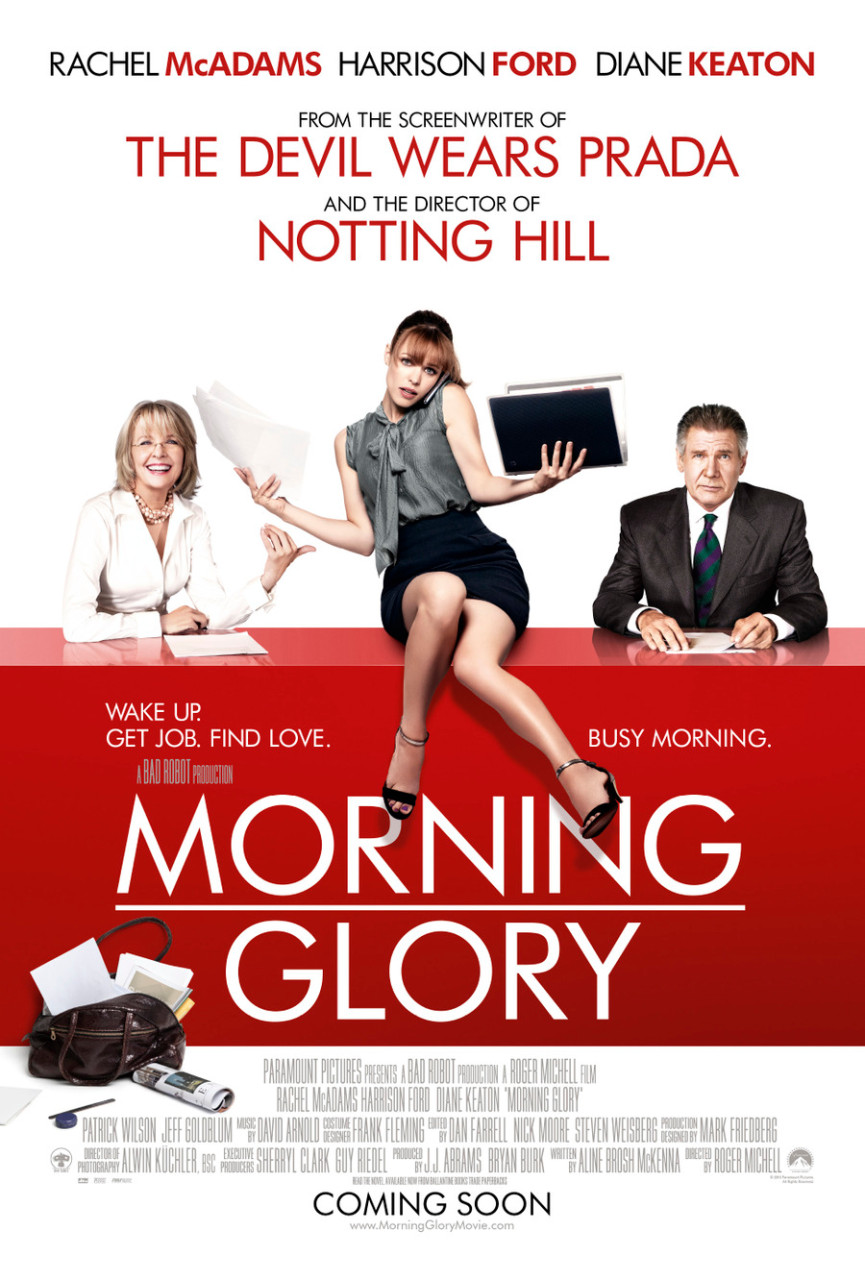 2010년 개봉한 영화 <모닝글로리>는 빠르게 전개되는 스토리, 캐릭터들의 역동적인 삶을 경쾌하게 담아낸 코미디 영화로 배경음악이 중요한 역할을 한다. 영화 속 주요 인물들 간의 갈등은 중요한 플롯 중 하나로 음향 감독이 이들의 차이를 음악적으로 대비시키며 각 캐릭터 간의 갈등을 더욱 정확하게 관객들에게 전달해주었다. '베키 풀러'와 '마이크 포머로이'는 완전히 다른 성격의 소유자로 베키가 경쾌하고 활기찬 에너지를 발산하는 반면에 마이크는 몹시 진지하고 무거운 성격을 지닌 뉴스 앵커로 묘사되며 이 둘의 대립을 음악적으로 드러내주었다. 밝고 가벼운 팝 음악이 베키의 장면에서 주로 사용이 되고, 마이크의 등장 장면에서는 클래식한 오케스트라나 무게감 있는 음악이 주로 사용되어 그의 진중한 성격과 저널리즘에 대한 철학까지 음악으로 표현해주었다. 두 사람이 서로 다른 것을 이해하고 극복하여 협력하게 되는 순간에도 역시 음악의 효과가 빠지지 않는데, 초반부와 달리 영화 후반부에서 활기찬 베키의 음악과 마이크의 무게감 있는 음악이 함께 조화를 이루며 사용이 된다. 장면과 함께 배경음악이 나오면서 단순한 장식적인 요소가 아닌 그 이상의 역할을 해주고 영화의 중요한 메시지인 협력과 성장을 관객들에게 전달하는 중요한 역할을 해주었다. 이 영화는 음악을 통해 이야기를 더욱 풍성하게 만드는 좋은 예시의 영화로 음향 감독들의 세심한 선택들이 영화의 완성도를 높이는데 큰 기여를 했다.